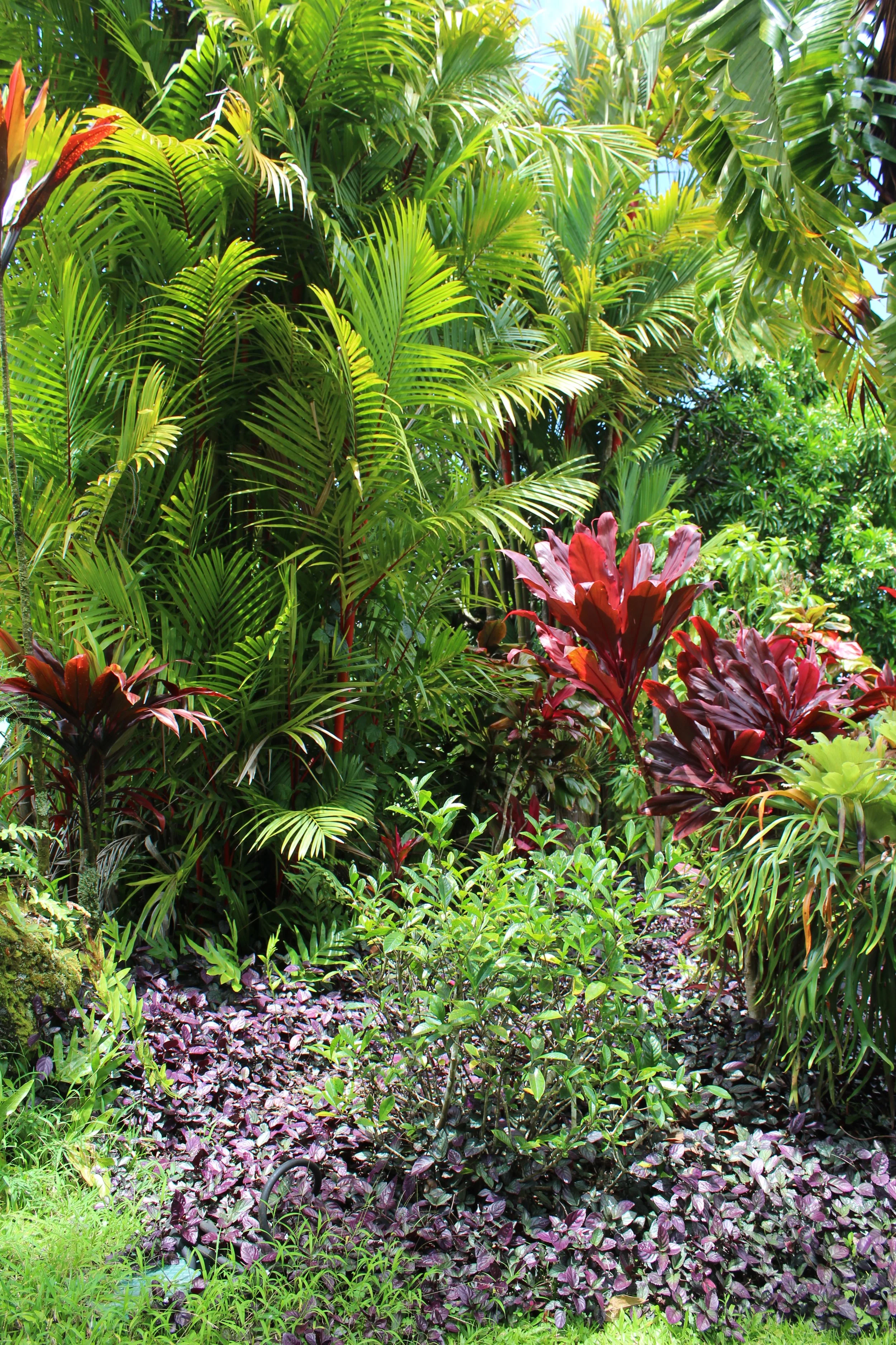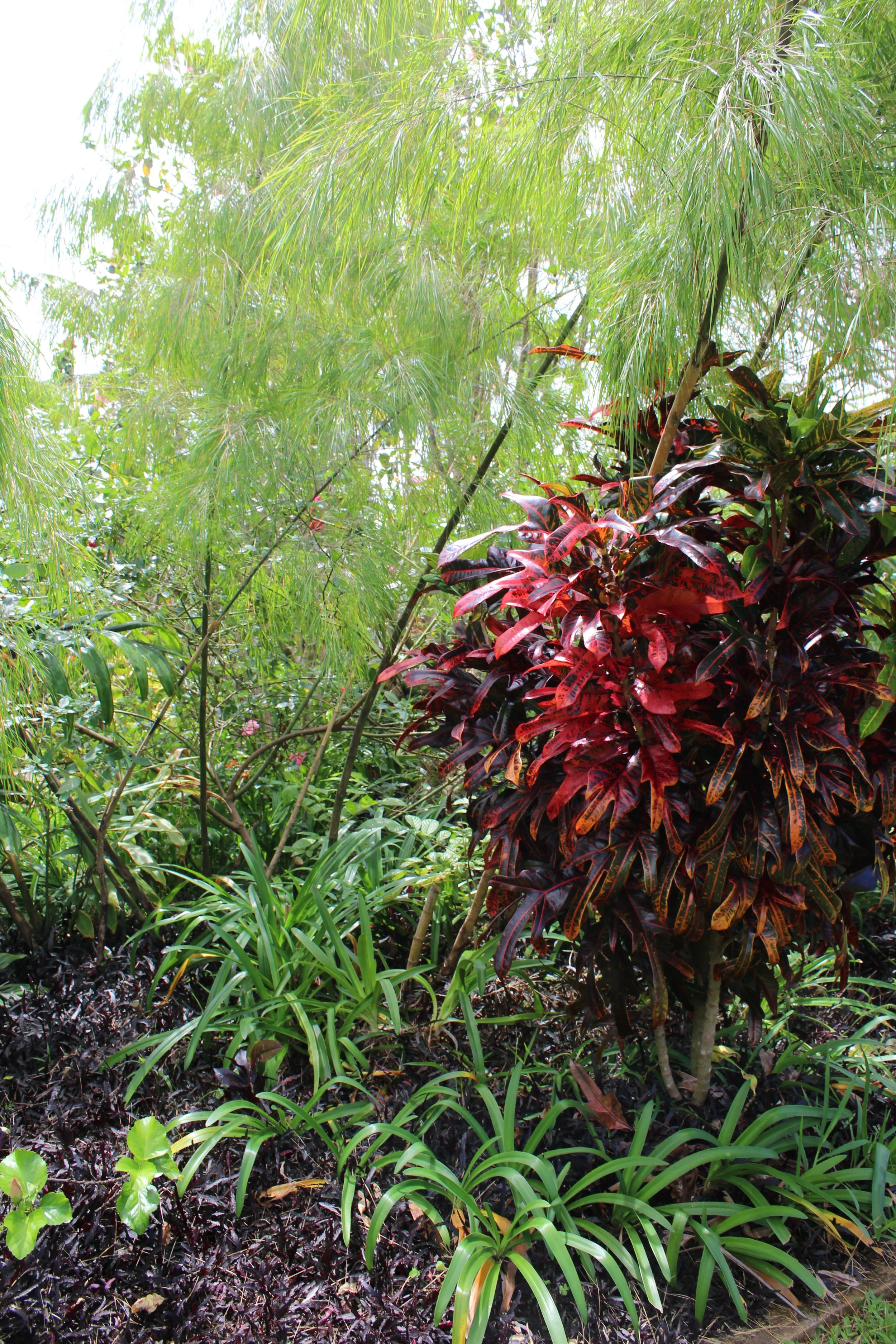 Bamboo, Crotons, and Hemigraphis groundcover