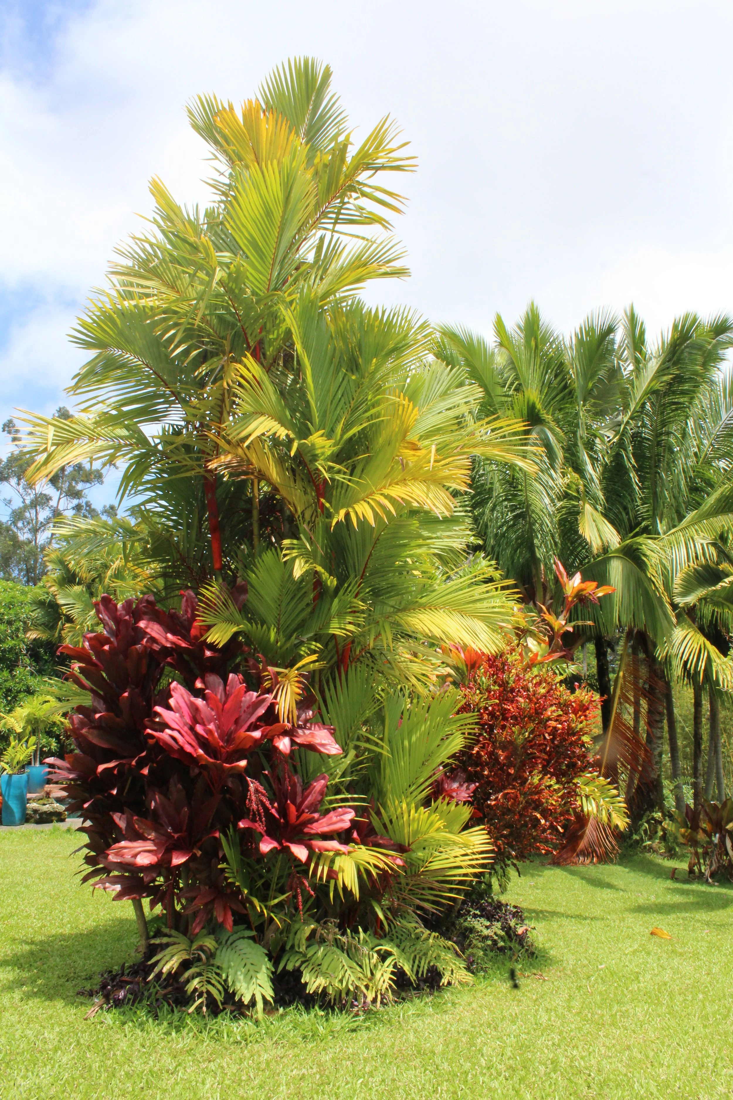 Stunning Sealing Wax Palm with Red Ti, Crotons, and Ferns